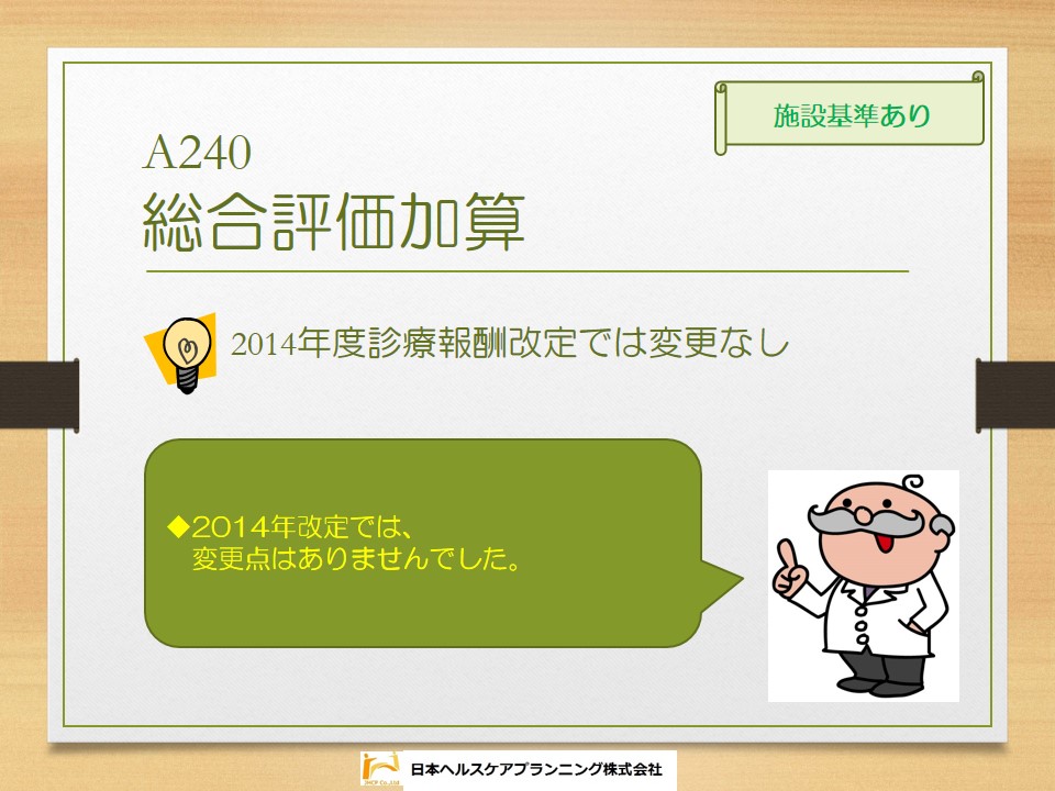 2013年度までの総合評価加算は、2014年診療報酬改定では変更点はありませんでした。
