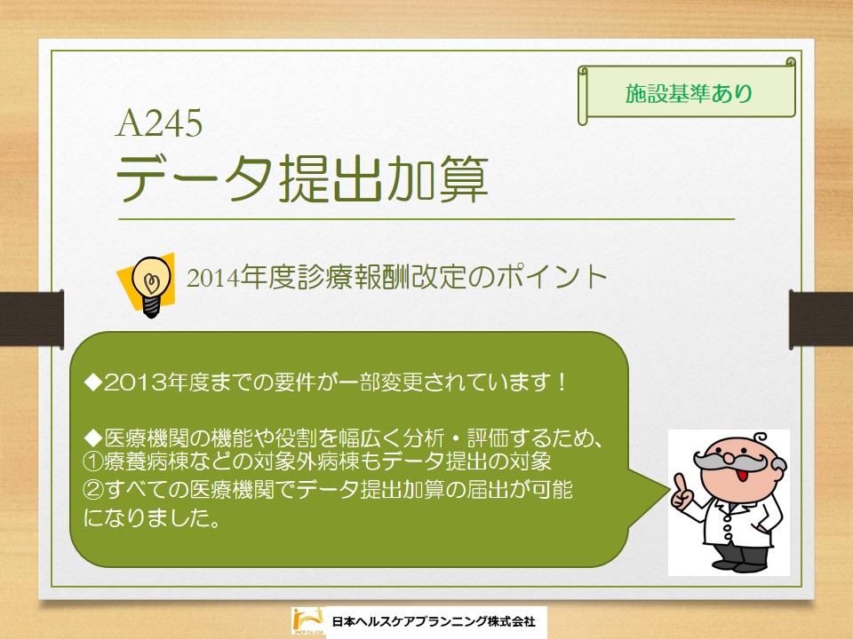 2014年診療報酬改定で届出可能な施設、データ提出の該当病棟が拡大されています。